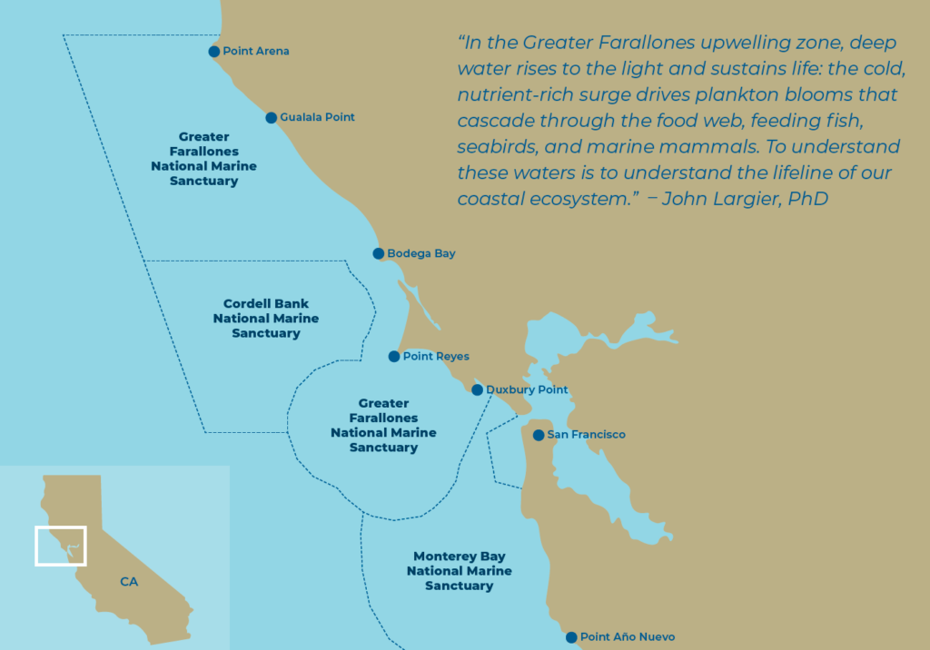 Together, Greater Farallones, Cordell Bank, and northern Monterey Bay National Marine Sanctuaries protect an ecosystem of extraordinary scope: